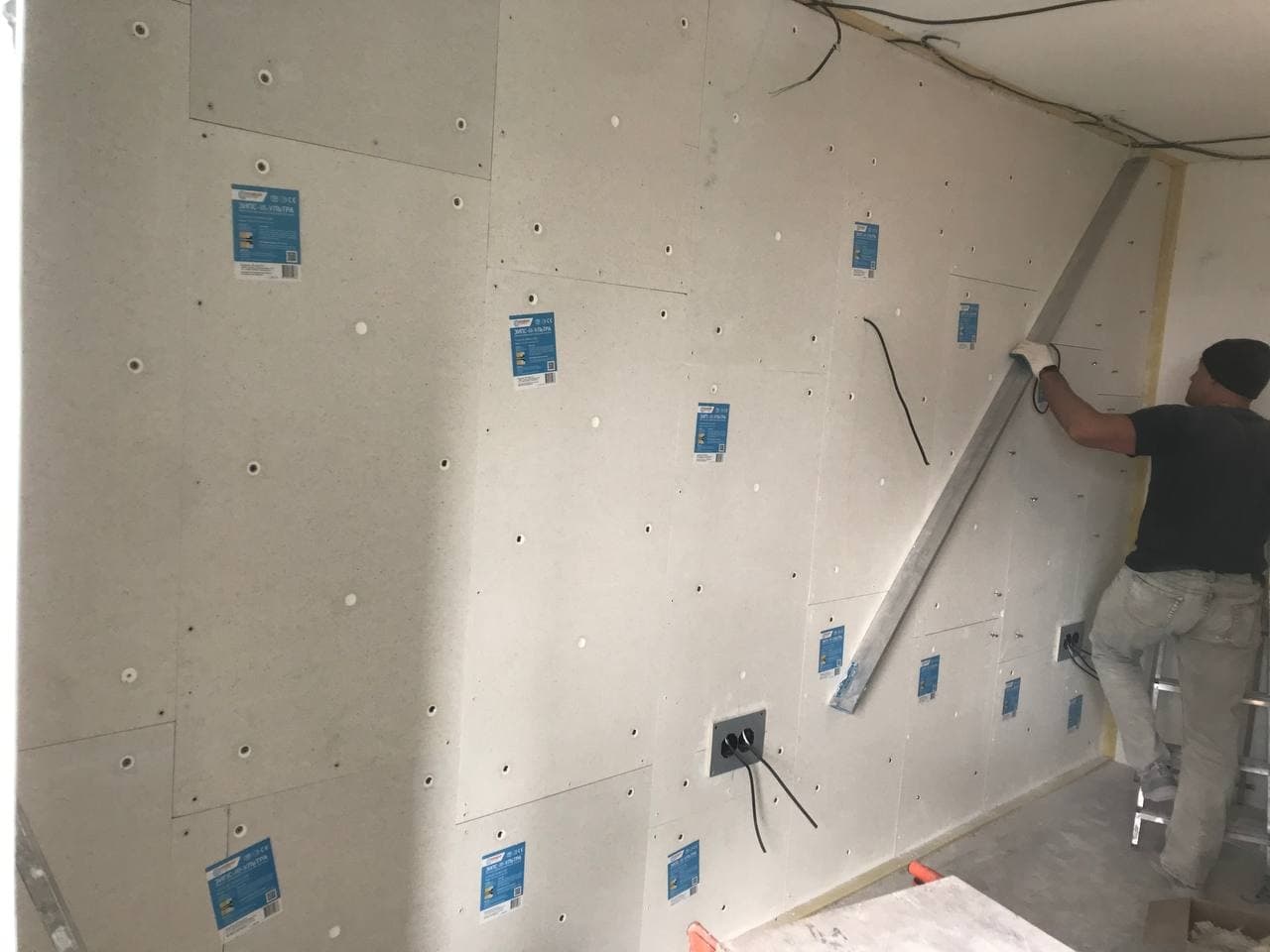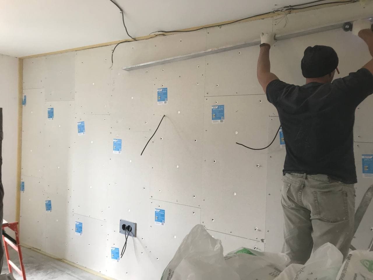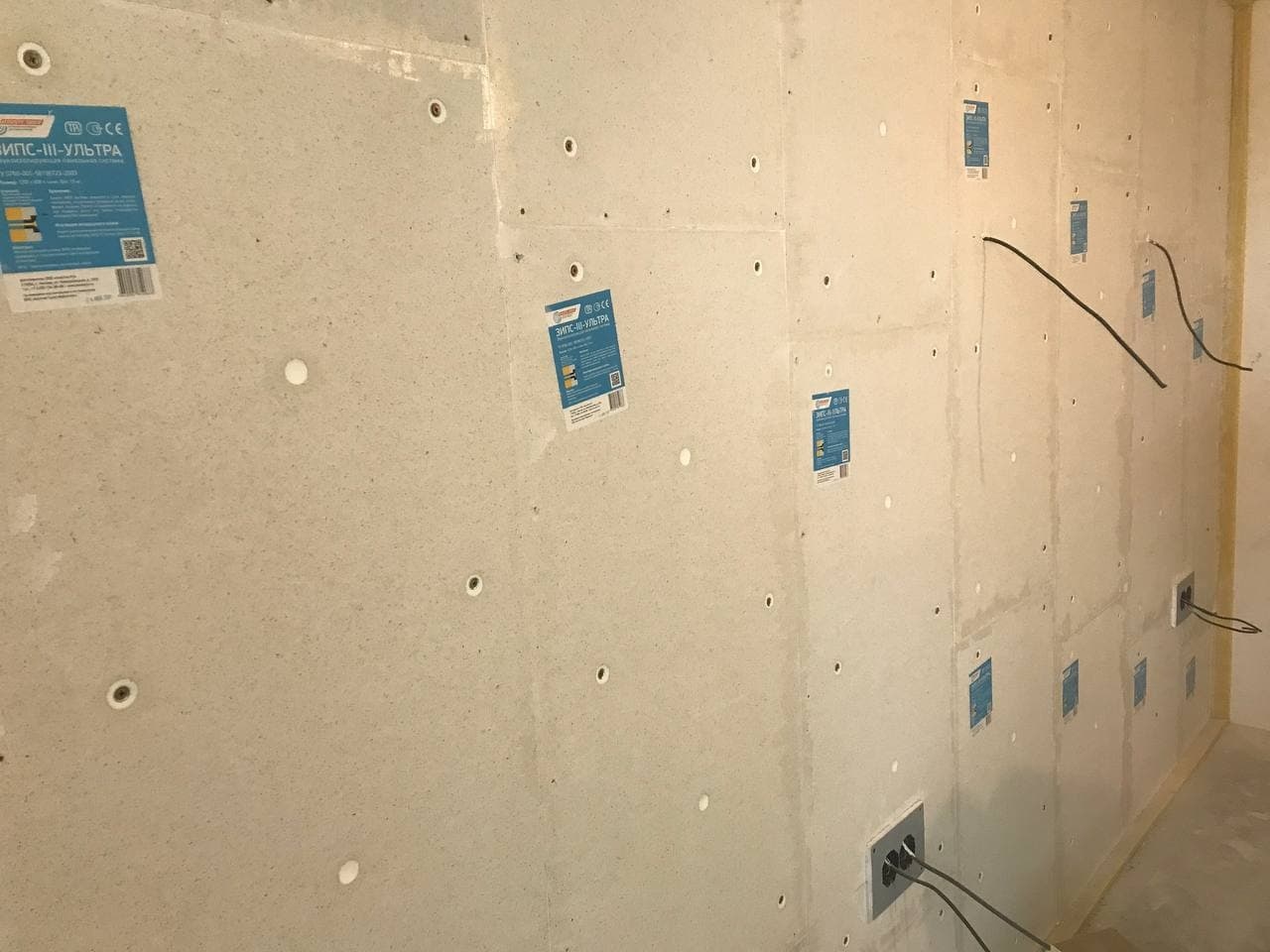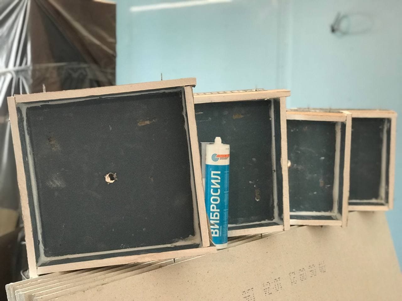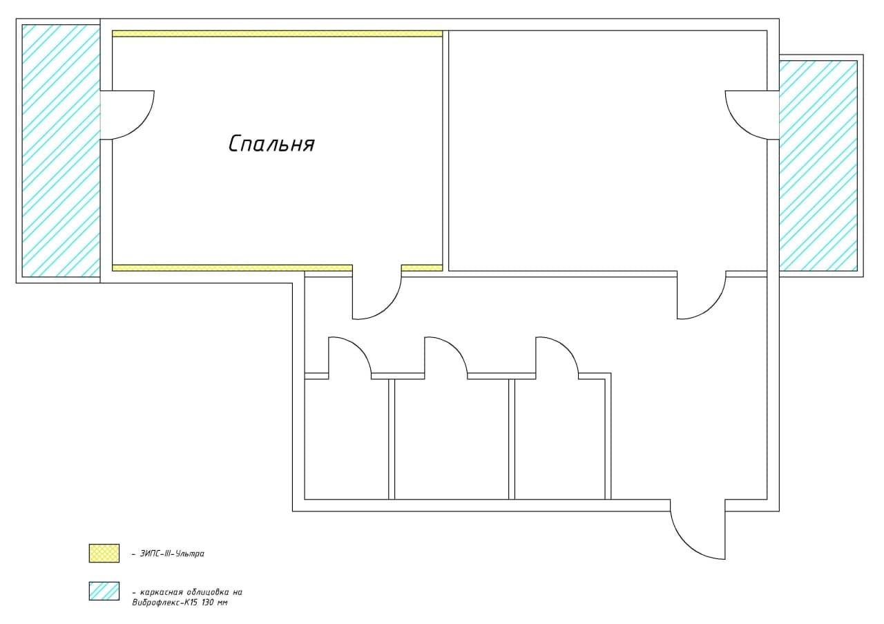 Приняли решение использовать панели ЗИПС-3-Ультра для двух стен. Основной элемент конструкции - это сами сэндвич панели ЗИПС-3-Ультра, лента Вибростек-М, герметик Вибросил и финишный слой Аку-лайн - звукоизоляционный гипсокартон, который плотнее обычного на 30%.
