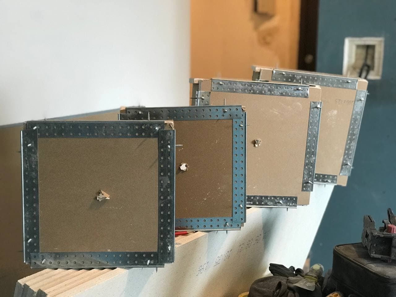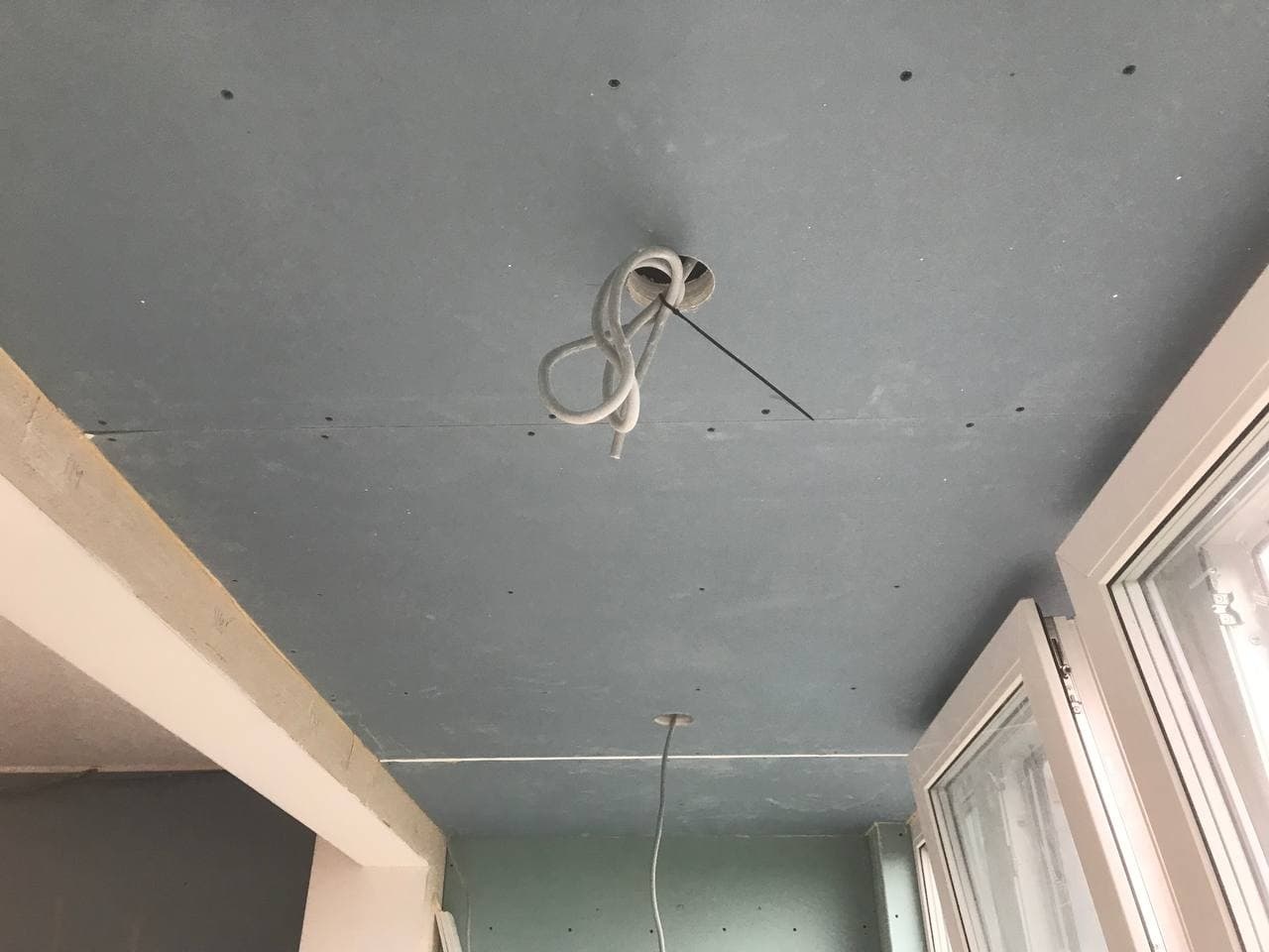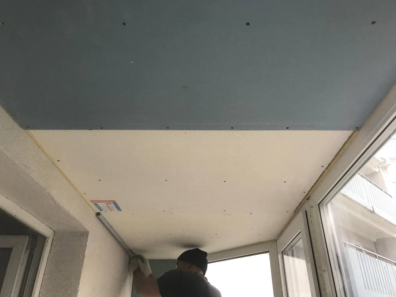 Ещё одним пожеланием Заказчика было выполнить звукоизоляцию лоджии, а именно сделать потолок. Был выбран каркасный звукоизоляционный потолок на виброизолирующих подвесах Виброфлекс. Заказчик планировал установить встроенные светильники, чтобы не ухудшить звукоизоляцию всей конструкции нами были изготовлены специальные звукоизоляционные короба под размер светильников. Короб остаётся внутри конструкции, через него выводится провод, а в отверстие устанавливается светильник, далее осуществляется финишная отделка. Работы были выполнены за два дня.
