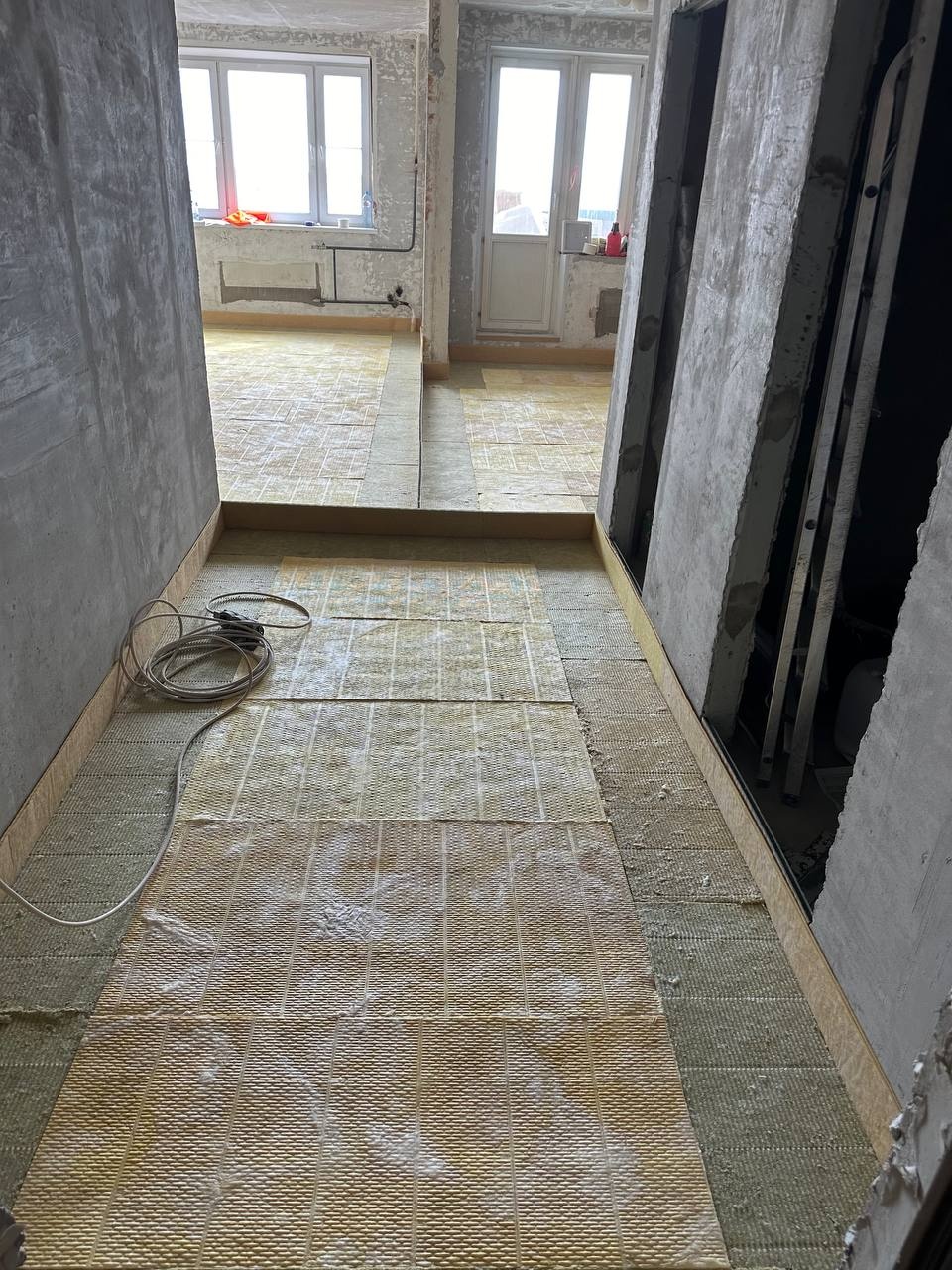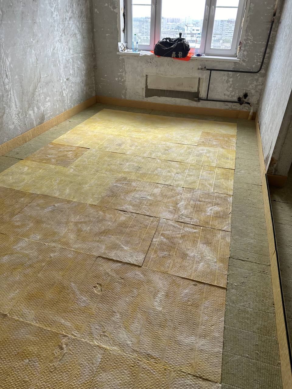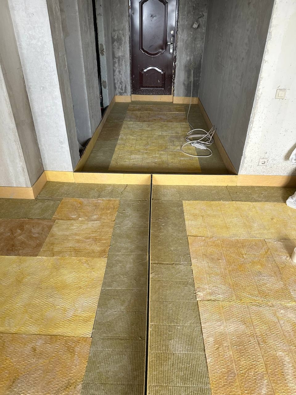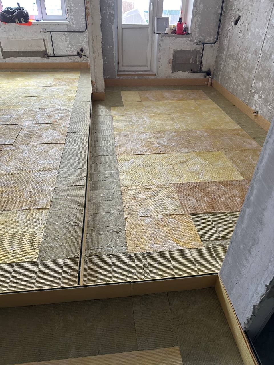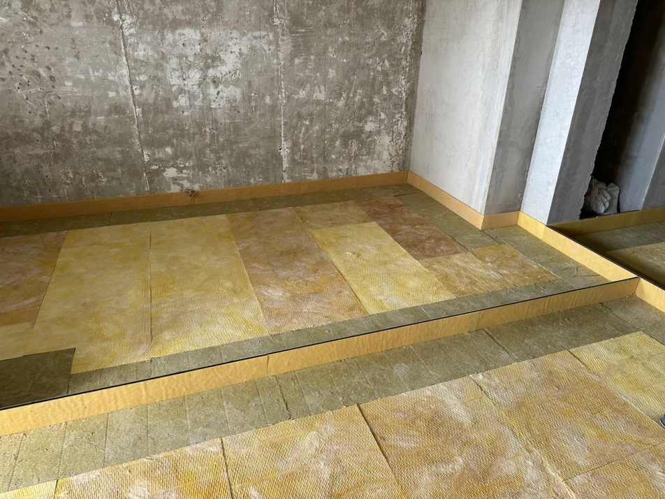 В качестве решения было выбрано решение "плавающего типа" по плитам Шумостоп-С2/К2 с последующей укладкой плавающей стяжки. В процессе монтажа также были применены материалы "Ультракустик Акустический шов" для разделения стяжки на фргаменты - это требуется для осблюдения технологии.