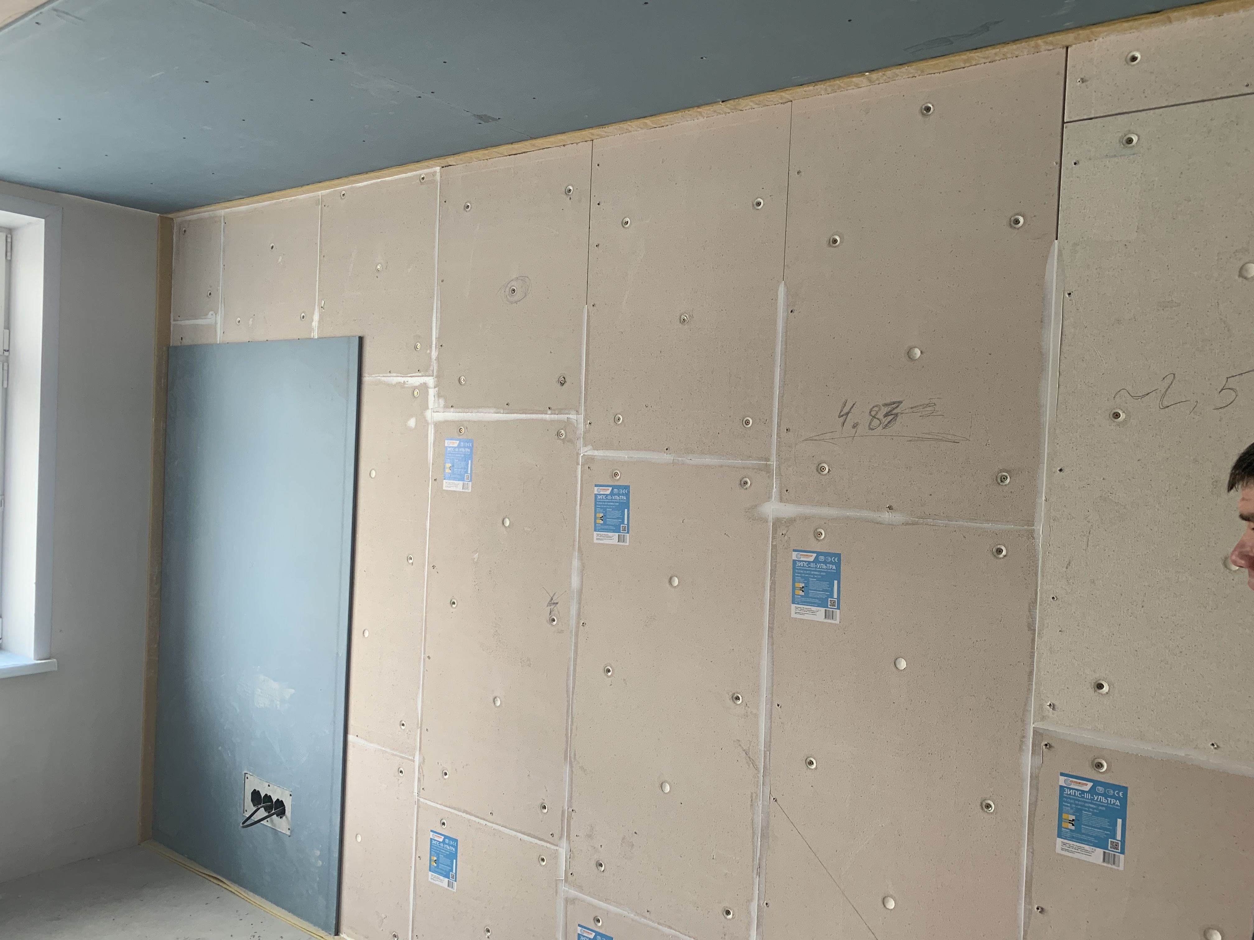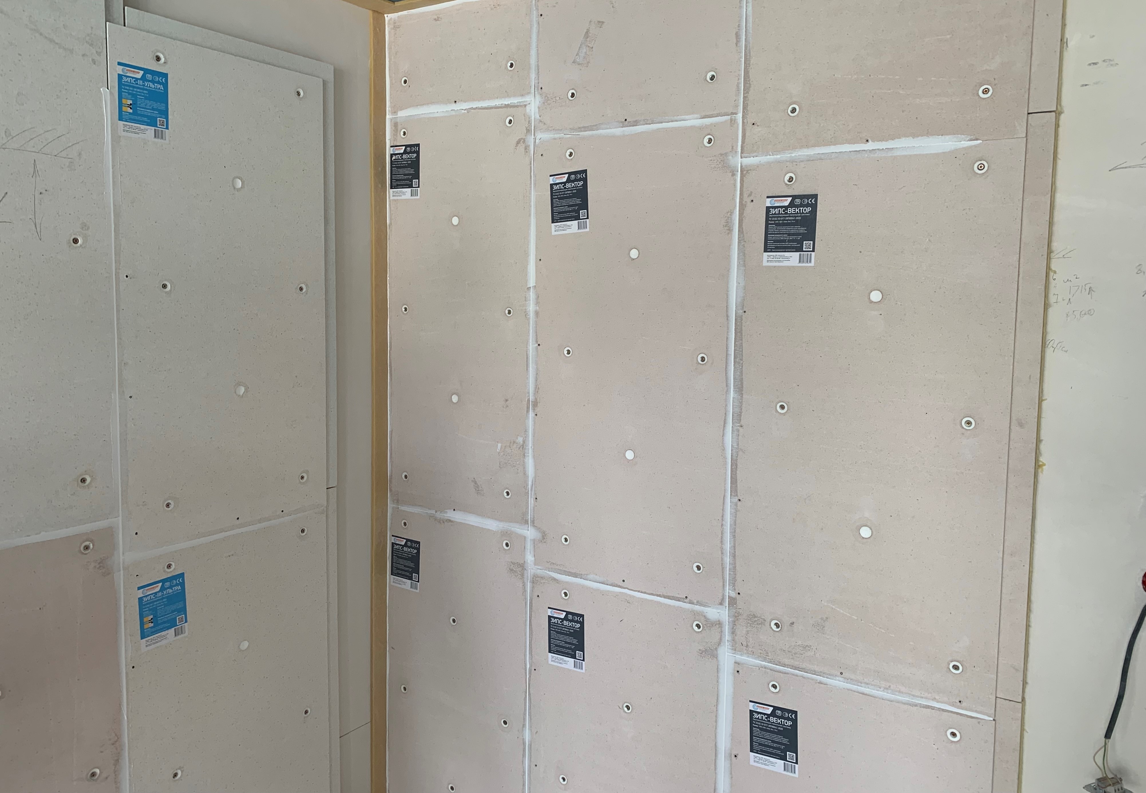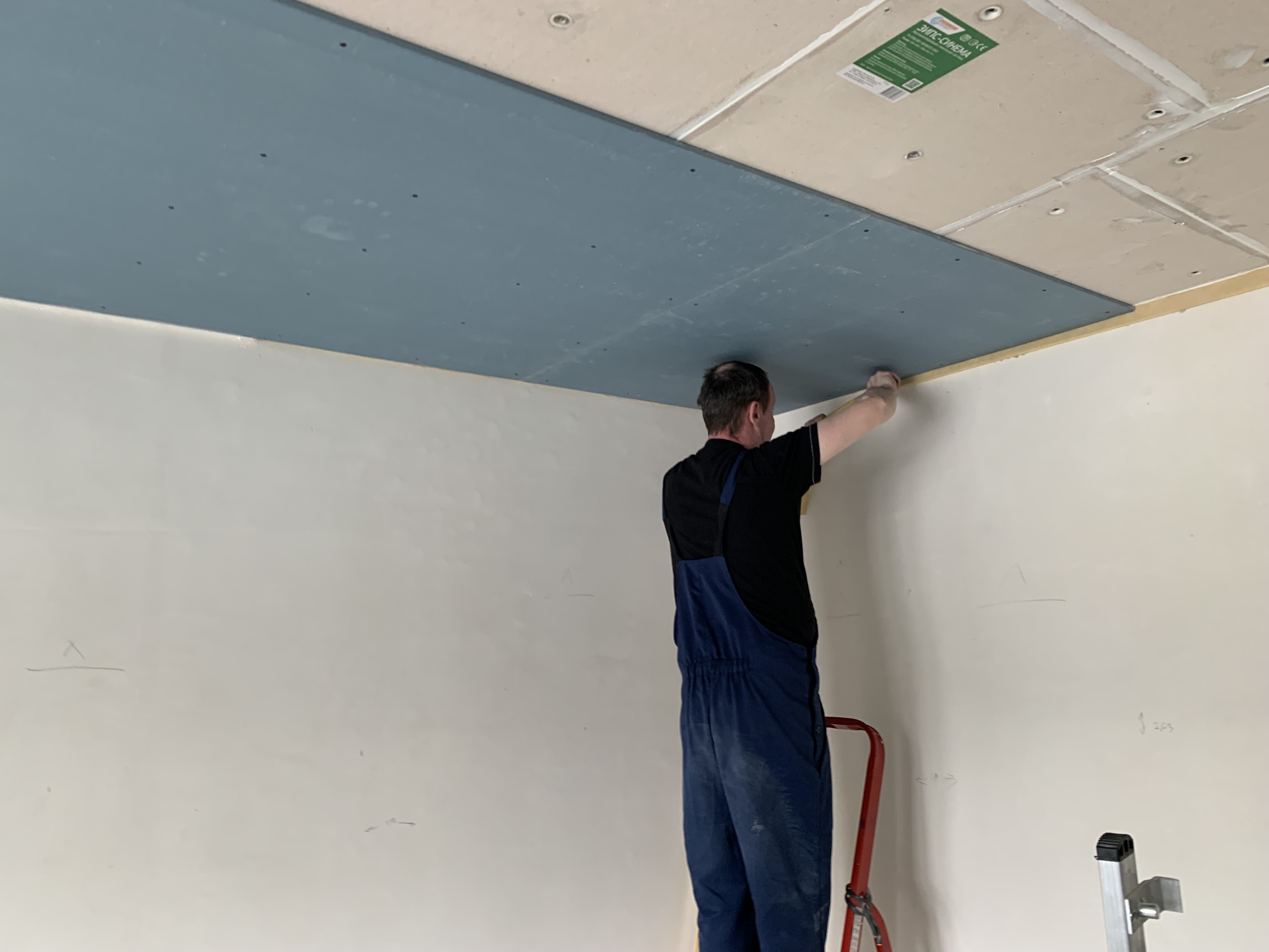 Для звукоизоляции квартиры мы выбрали бескаркасную звукоизоляционную облицовку. Руководствуясь тем, что стены и потолок достаточно ровные и перепад менее 1 см, было принято решение применить панели ЗИПС-Ультра и ЗИПС-Вектор для звукоизоляции стены и перегородки. Панели ЗИПС-Синема для звукоизоляции потолка по всей квартире.