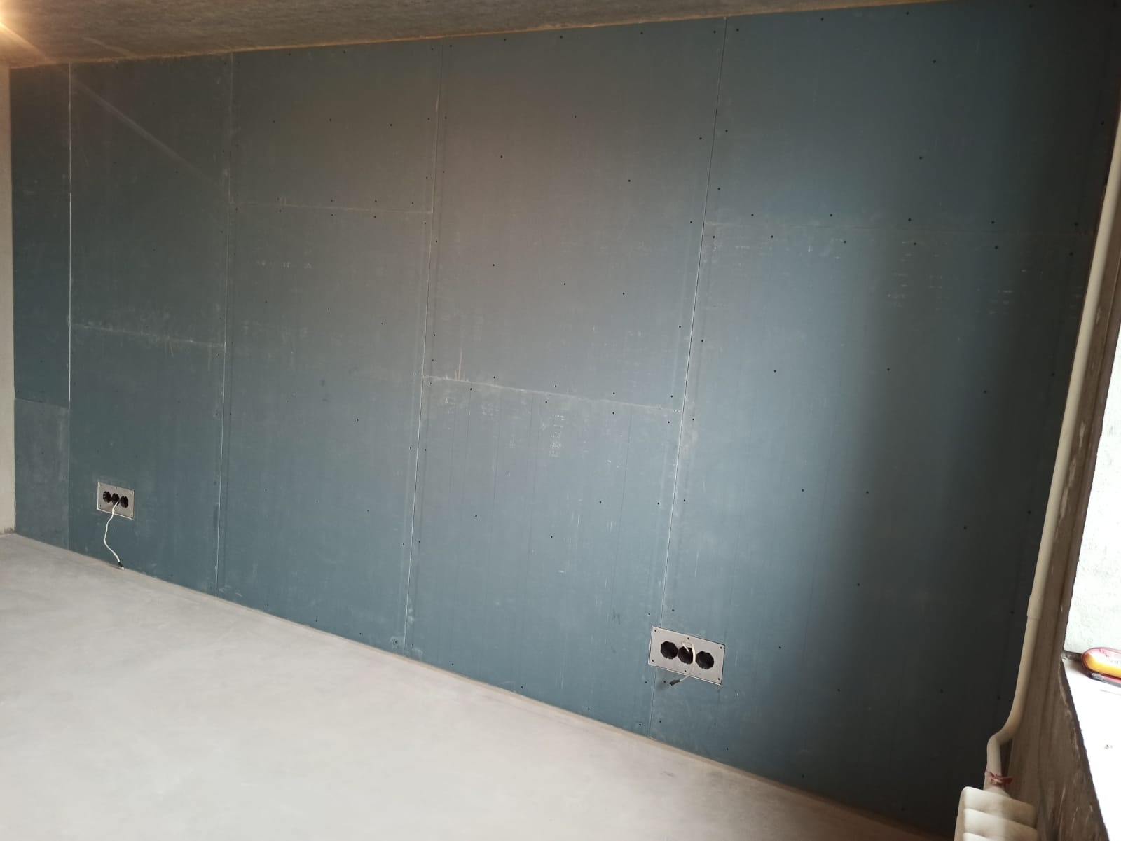 Исходя из полученных данных мы приняли решение, что звукоизоляции стены по всей длине, граничащей с квартирой соседа, будет достаточно.
