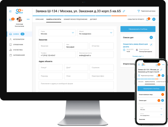 Типовой бизнес процесс строительный компании обязательно включает 3-4 встречи с клиентом на протяжении сделки. Благодаря платформе мы существенно снизили количество контактов и встречаемся с клиентом только во время замера на объекте и при сдаче работ, все остальные операции происходит в режиме онлайн. В нашей практике бывали случаи, во время которых мы ни разу не виделись с клиентом очно, даже приемку работ клиент осуществлял дистанционно по предоставленным фото- и видео- отчетам.