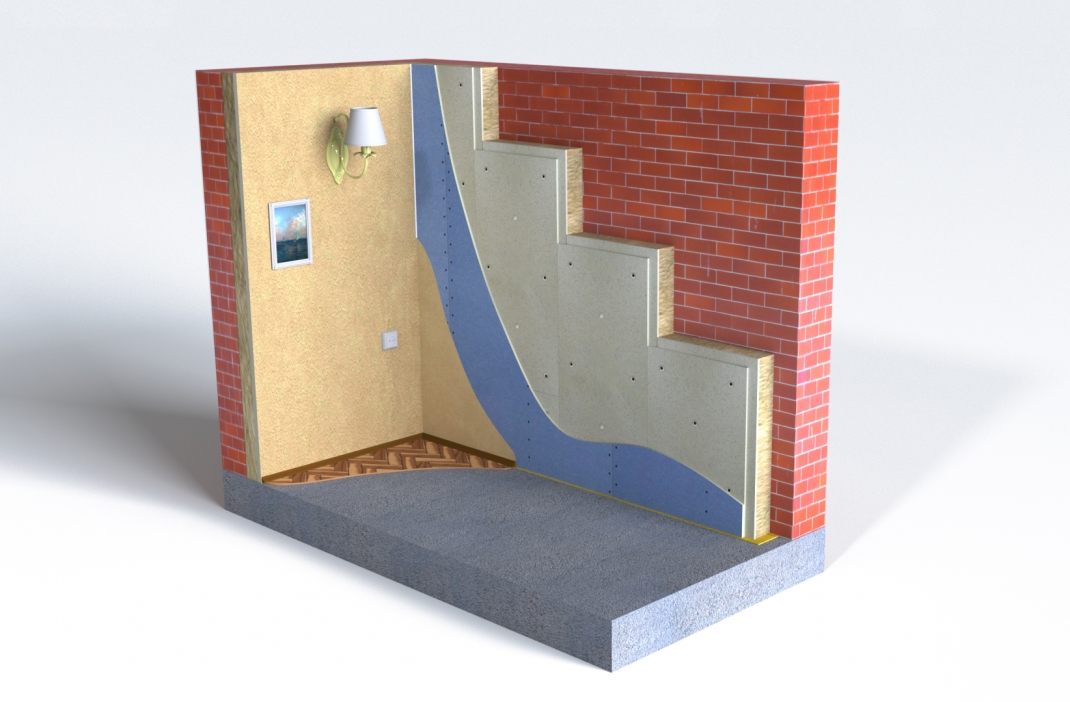 Конструкция звукоизоляционной бескаркасной облицовки состоит из панелей ЗИПС-Синема толщиной 120 мм, комплекта крепежа, виброизоляционной ленты Вибростек-М 150, финишных листов Gyproc Aku-line и герметика Вибросил. Панели ЗИПС-Синема крепятся к стене только через существующие виброузлы. Панель закрепляется на изолируемой стене при помощи всех узлов крепления, причем в двух центральных узлах используются металлические клин-анкеры. Головка винта должна вкручиваться в виброузел не глубже, чем 1-2 мм от уровня лицевой стороны панели. Подрезки менее 250 мм в монтаже не применяются.